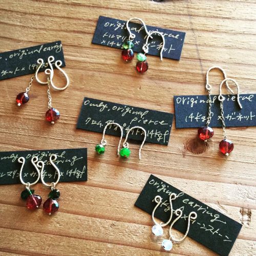 グリーンのトルマリンと赤いガーネットを使ってりんごのような可愛らしさを持っています。